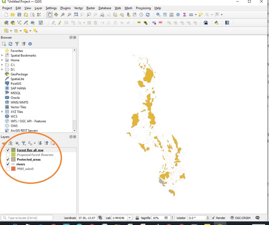 Step 4. Go to the following page of the Department of Forestry in Malawi where you will find several spatial data files. Download Rivers.zip and ‘Forest Reserves.zip‘ and ‘Malawi All Protected Areas.zip’. Save and extract all zips folders on your PC.