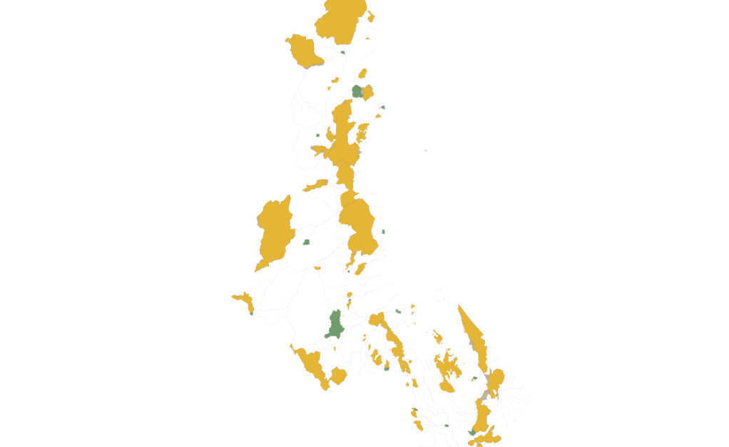 This is now what you should see (showing only a part of the whole map). The spots in green are the urban areas.